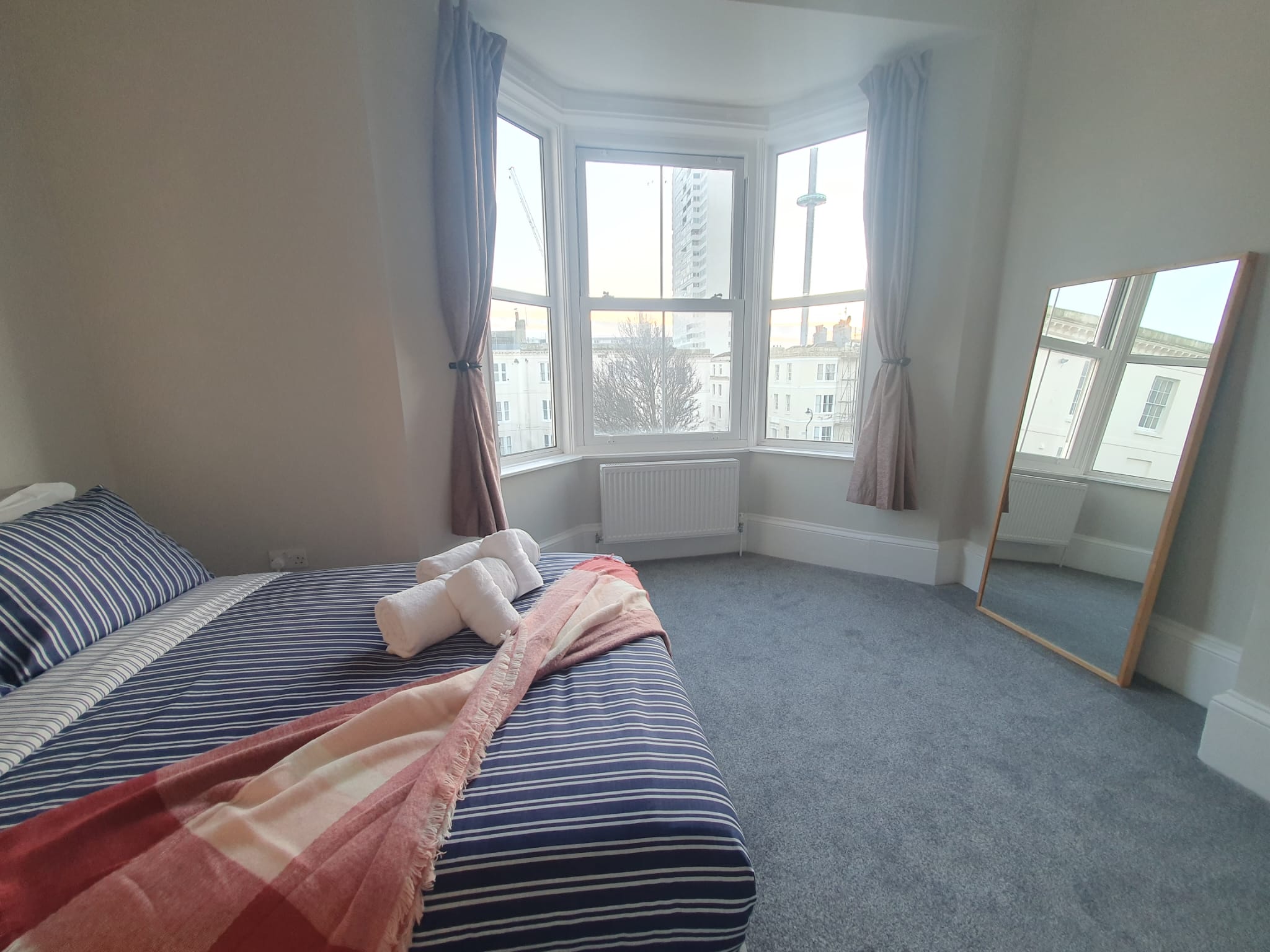 Indulge in the spectacular view of Brighton i360 from your double bedroom, complete with a cozy baby cot for added convenience.